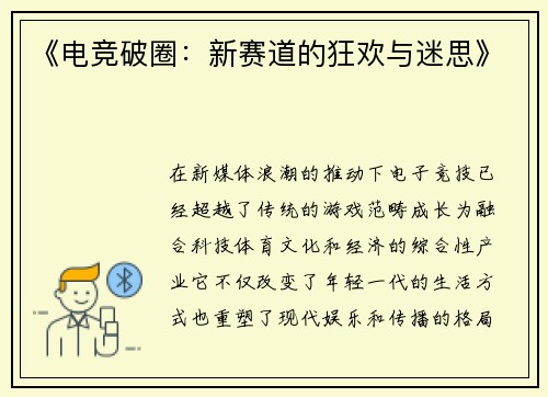 你给出的这个标题本身就充满了张力与故事感——《热血战歌:炸裂电竞圈的少年声浪》。它已经勾勒出了一幅完整的画卷:关于青春、梦想、电子竞技的轰鸣与一代人的声音。 下面,就让我们以此为蓝图,展开这篇热血的篇章。 《热血战歌:炸裂电竞圈的少年声浪》 这不是一曲预先谱写的赞歌,而是一群少年,用鼠标与键盘作为乐...